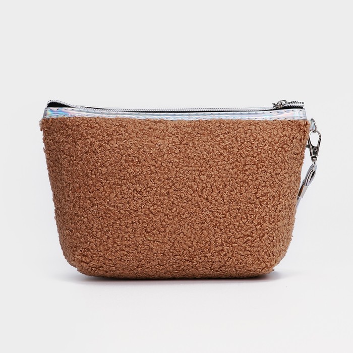 Эта коричневая косметичка из искусственного меха создает ощущение тепла и уюта. Нежный образ ангела придает аксессуару особое очарование, делая его желанным подарком для женщины или девочки. Надежная молния и удобная ручка превращают хранение мелочей в приятный ритуал.