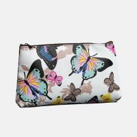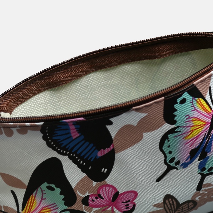 Косметичка-пенал на молнии, плоская, с принтом, белая/разноцветная