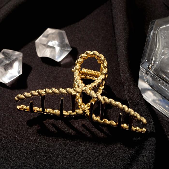 Крабик для волос «Валери», плетёная петелька, 7.5 см, золото