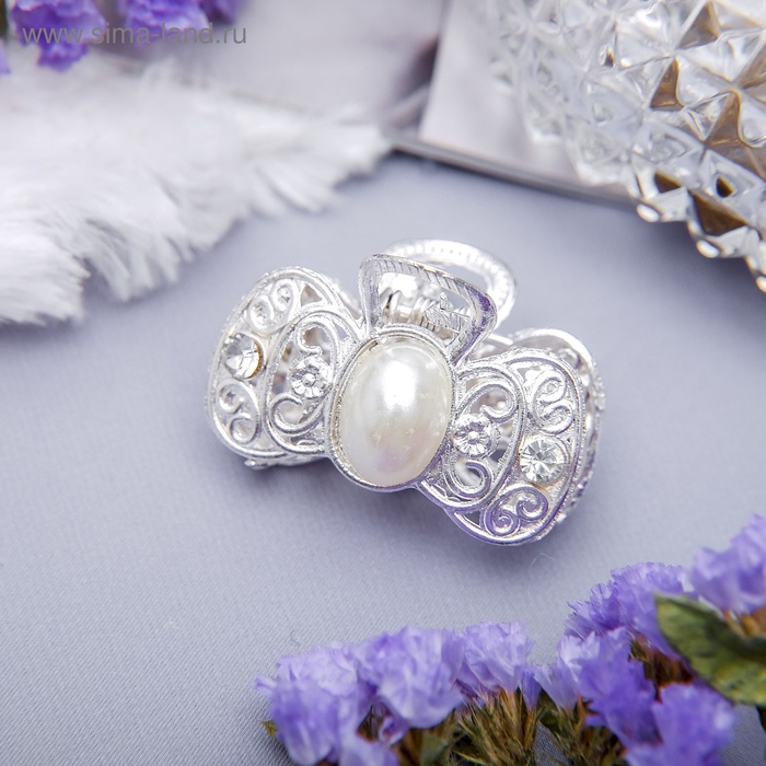 Крабик для волос «Жемчужный», бантик, 3.3 см, серебро