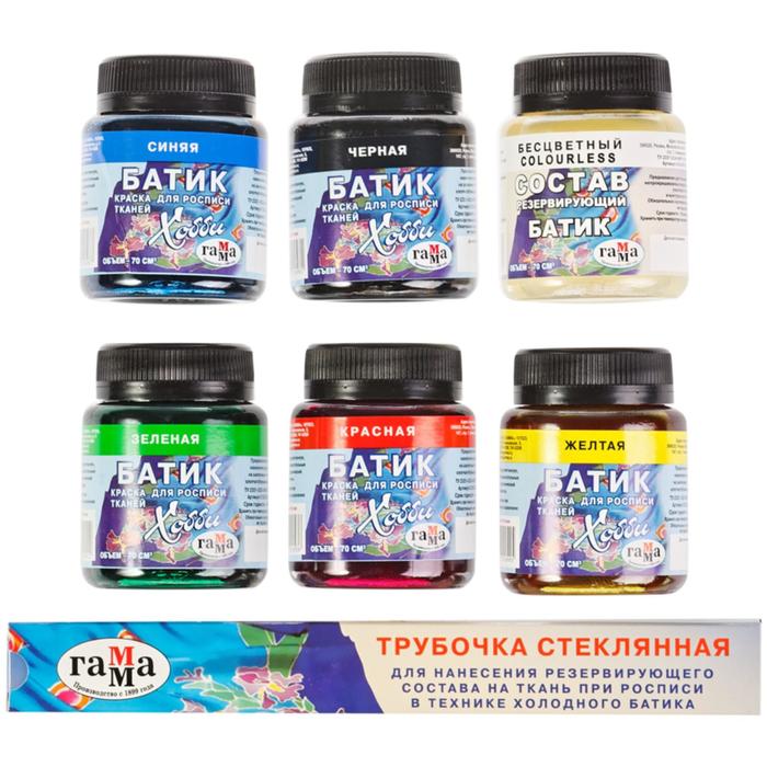 Краска по ткани Гамма "Батик-хобби", набор 5 цветов х 75 мл + резервирующий состав