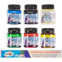 В наборе: 5 цветов красок, 1 баночка резервирующего состава, трубочка для резервирующего состава, инструкция.