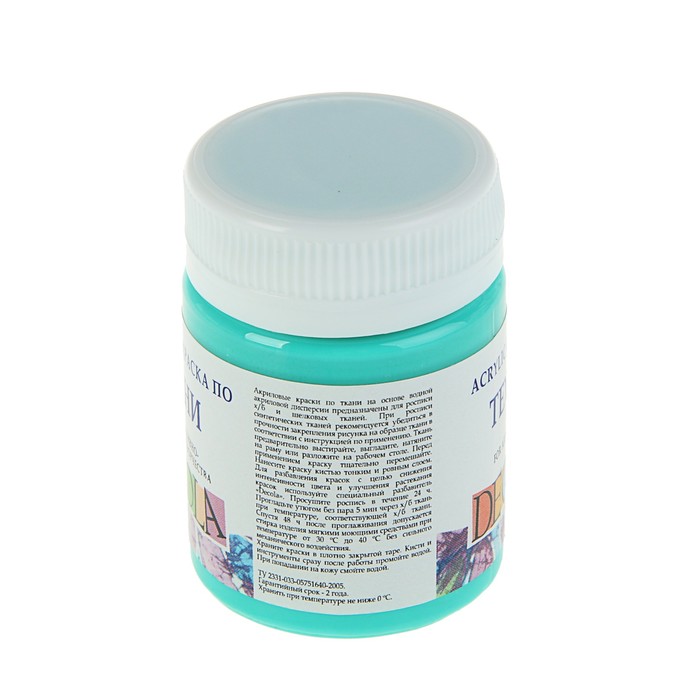 Краска по ткани, банка 50 мл, ЗХК Decola, Мятная 4128735, (акриловая на водной основе)