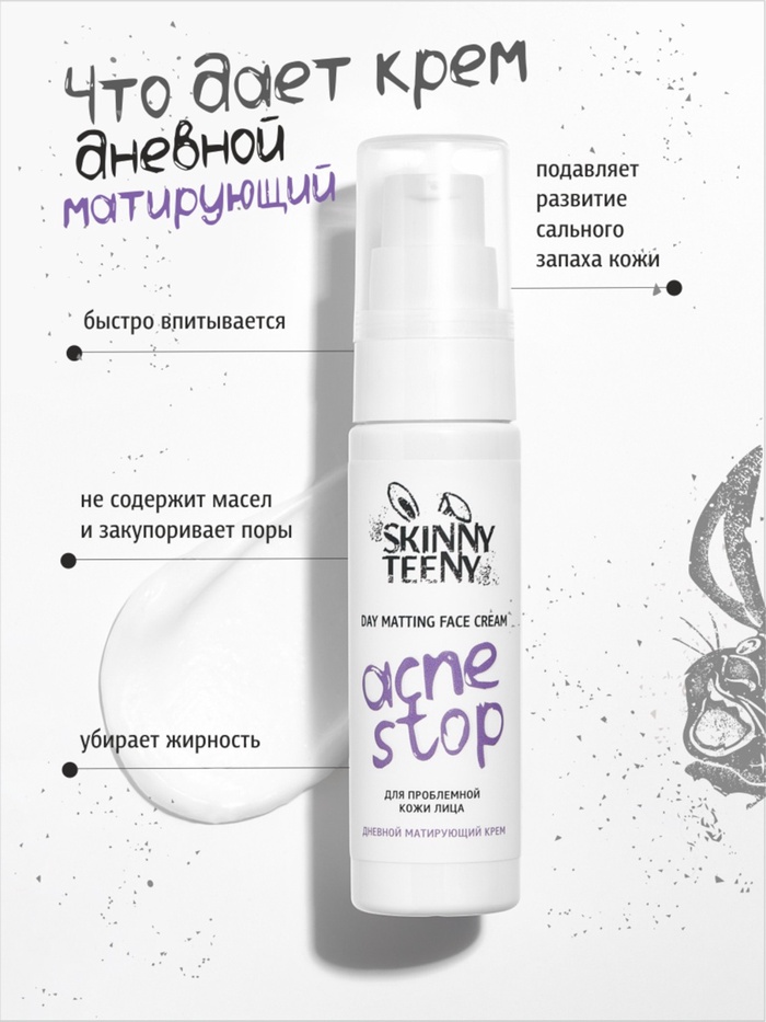 Крем дневной матирующий Skinny Teeny для проблемной кожи лица, 30 мл