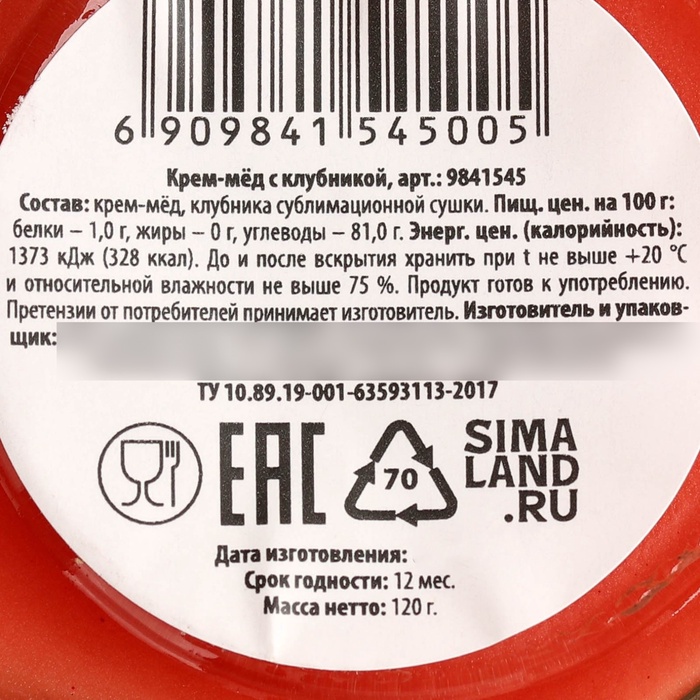 Крем - мёд «С новым годом», со вкусом клубники, 120 г