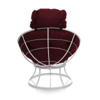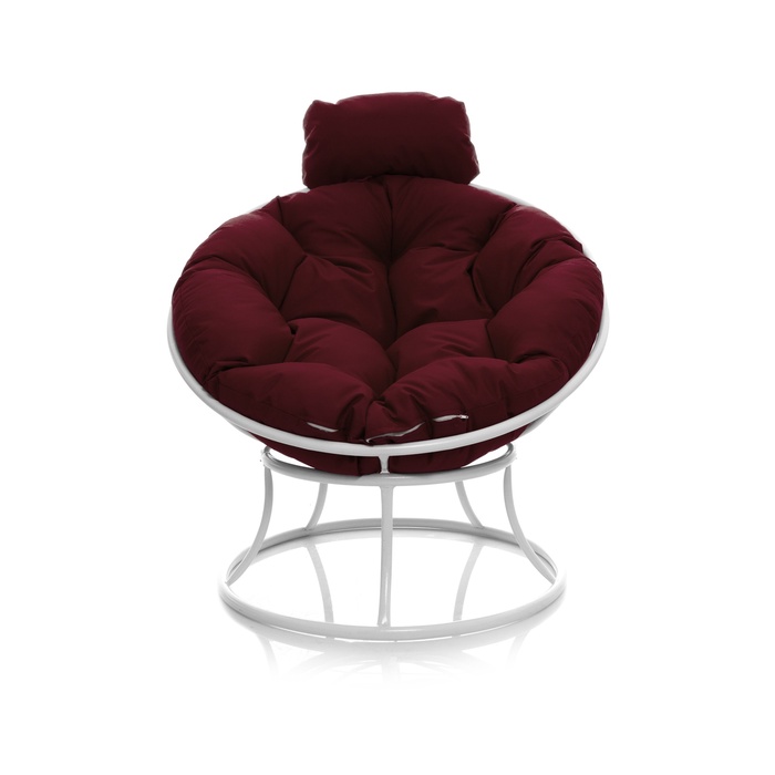 Кресло «Папасан» — стильное и эргономичное решение для комфортного отдыха. Прочная металлическая конструкция выдерживает до 100 кг, а белая отделка в сочетании с бордовой подушкой создает элегантный контраст. В комплекте идет мягкая подушка для сидения, обеспечивающая дополнительный комфорт. Идеально подходит для гостиной, спальни или уютного уголка на балконе.