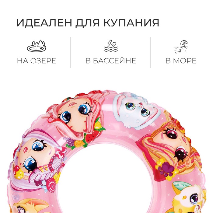 Надувной круг подходит для весёлого досуга в бассейне и на природных водоёмах. Изготовлен из прочного ПВХ с ярким принтом, который не выгорает на солнце.