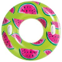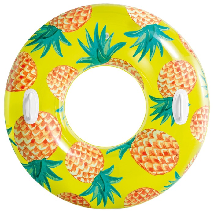 Надувной круг пригодится во время отдыха в бассейне или открытых водоёмах. Модель оснащена пластмассовыми ручками. В сдутом виде изделие занимает мало места, его удобно брать с собой на пляж. Яркий и привлекательный дизайн делает круг заметнее в воде.