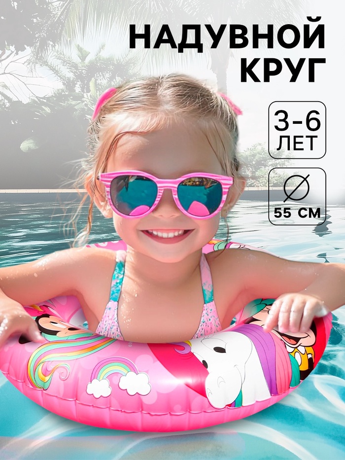 Круг для плавания надувной «Минни Маус» ? 55 см, детский, розовый