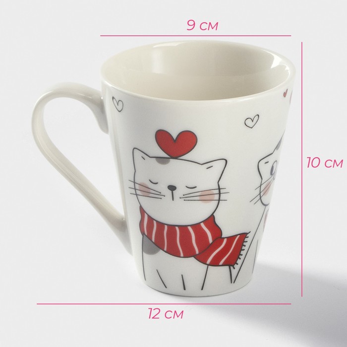Кружка Доляна «Котики», 320 мл, фарфор, цвет белый