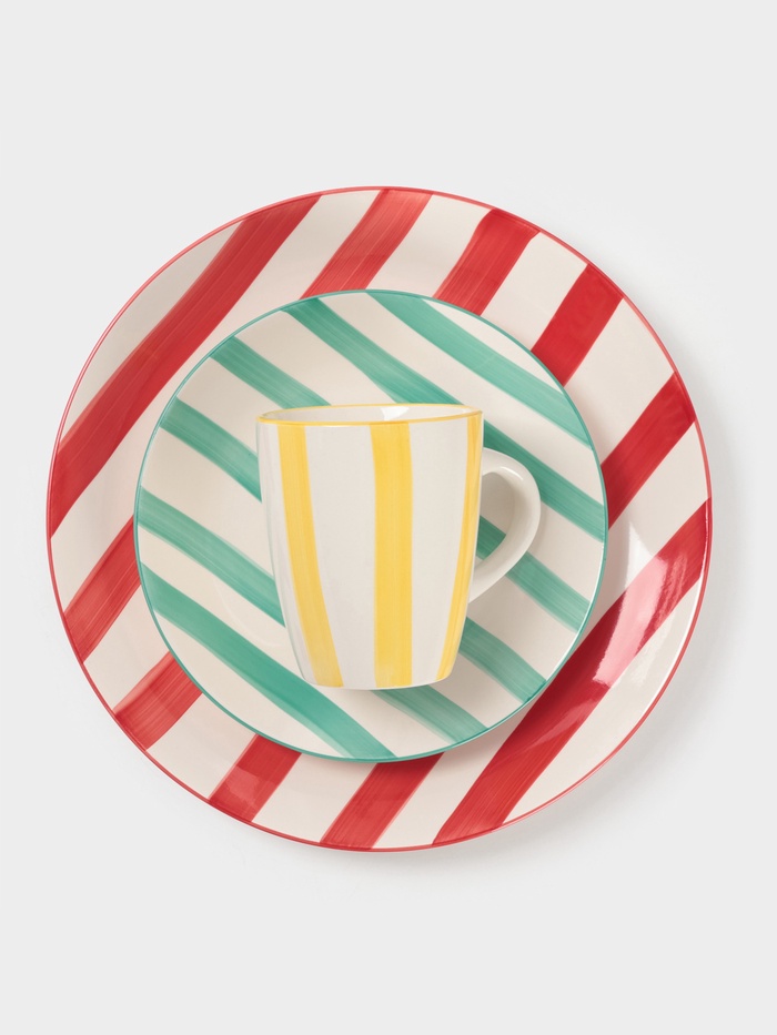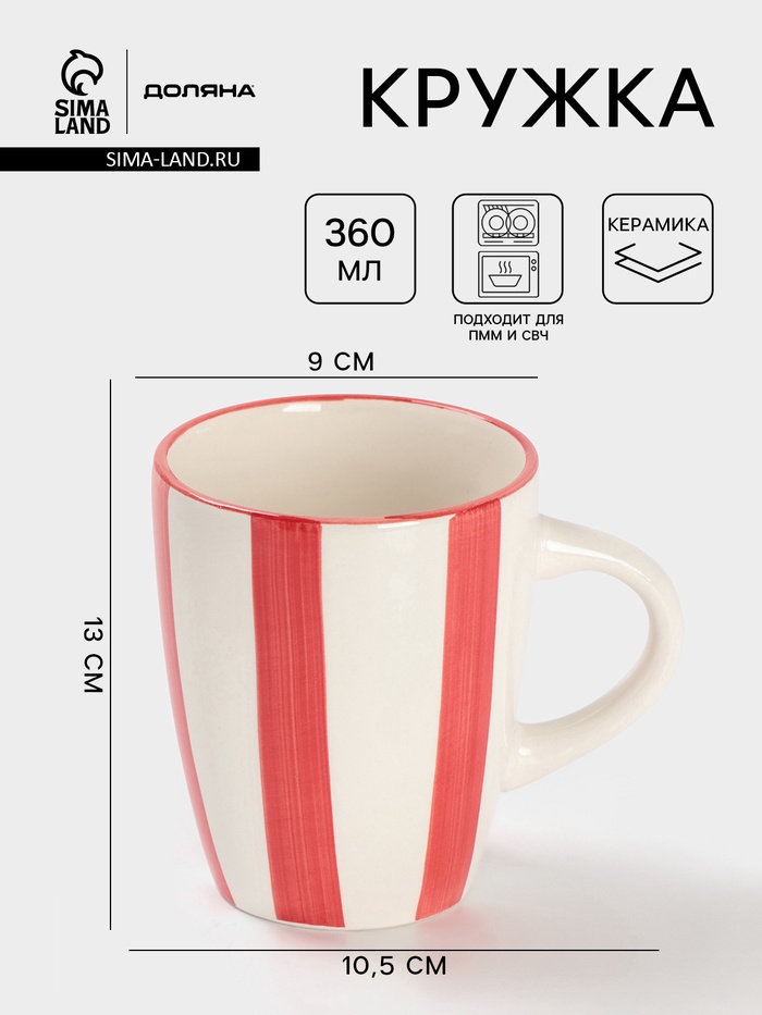 Яркие алые полосы на белом фоне создают динамичный образ, заряжающий энергией на весь день. Гладкая керамическая поверхность приятно согревает руки, а прочный материал сохраняет температуру напитка.