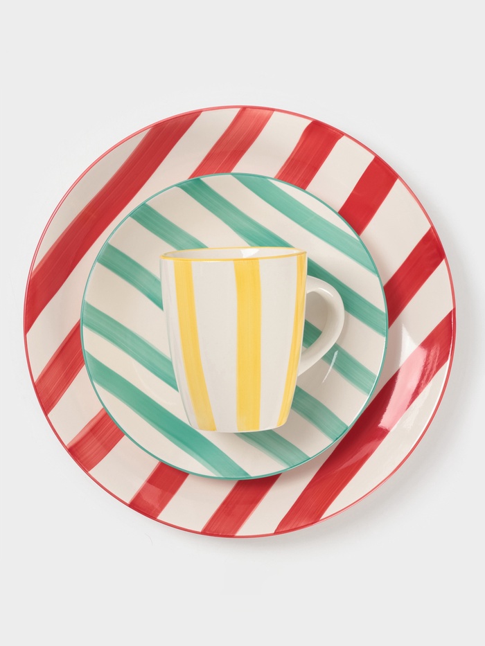Эта керамическая кружка с полосатым узором — практичный и стильный аксессуар для повседневного использования. Ее удобная форма и объем 360 мл делают ее идеальной для утреннего кофе или вечернего чая.