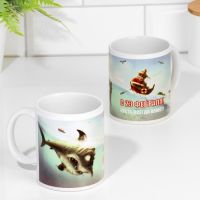 Кружка изготовлена из керамики. Рисунок нанесён методом сублимации, при котором краска проникает в верхний слой изделия, поэтому изображение получается стойким.