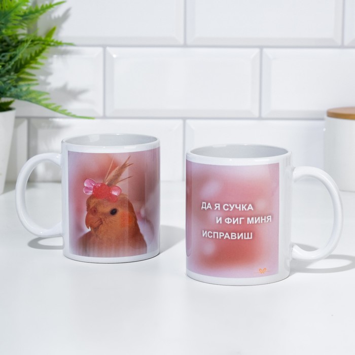 Набор|Нет;Цвет|Розовый;Объём, мл|320;Тематика|Приколы;Тематика|Птицы;Рисунок|Да;Материал|Керамика;Дополнительный аксессуар|Без аксессуаров;Индивидуальная упаковка|Нет;Можно мыть в посудомоечной машине|Да;Можно использовать в СВЧ-печи|Да;Текстура|Гладкая;Особенности|Сублимация;Матовая поверхность|Нет;