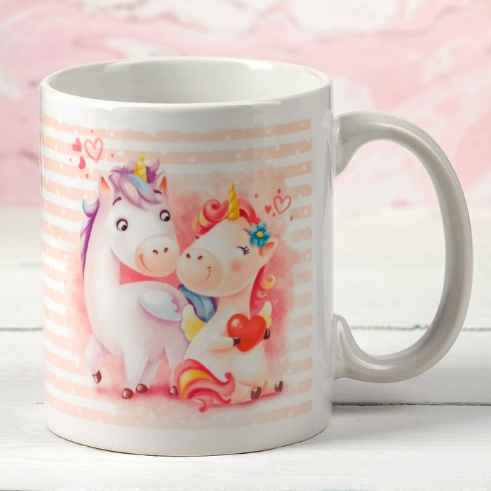 Кружка изготовлена из керамики. Рисунок нанесён методом сублимации, при котором краска проникает в верхний слой изделия, поэтому изображение получается стойким.
