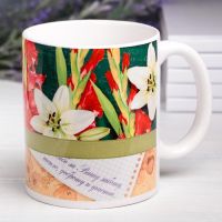 Кружка изготовлена из керамики. Рисунок нанесён методом сублимации, при котором краска проникает в верхний слой изделия, поэтому изображение получается стойким.