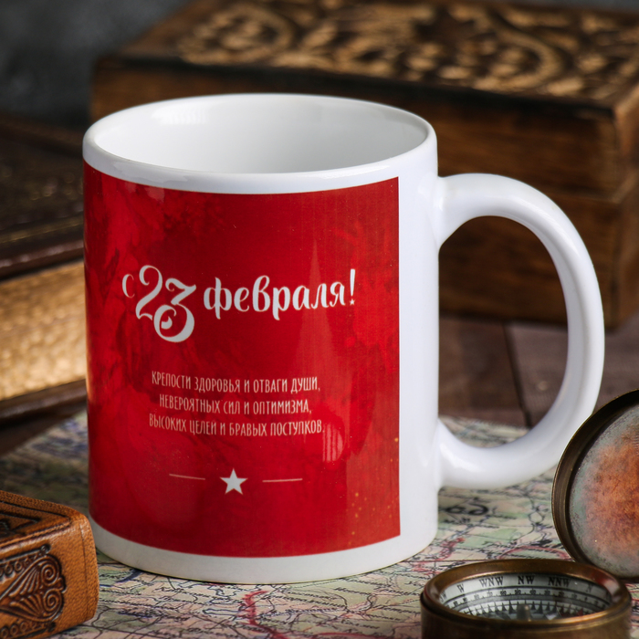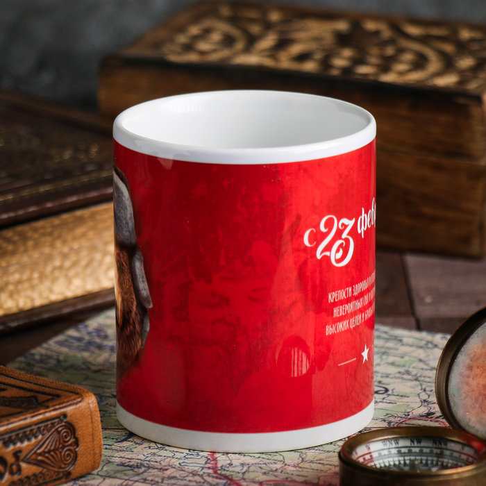 Набор|Нет;Цвет|Разноцветный;В наборе, шт.|1;Объём, мл|320;Тематика|Патриотическая;Тематика|Праздник;Тематика|Мужская;Рисунок|Да;Тематика праздника|23 Февраля;Материал|Керамика;Дополнительный аксессуар|Без аксессуаров;Индивидуальная упаковка|Нет;Можно мыть в посудомоечной машине|Да;Можно использовать в СВЧ-печи|Да;Текстура|Гладкая;Особенности|Сублимация;Матовая поверхность|Нет;