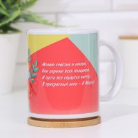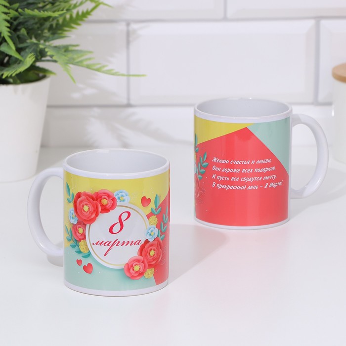 Кружка изготовлена из керамики. Рисунок нанесён методом сублимации, при котором краска проникает в верхний слой изделия, поэтому изображение получается стойким.