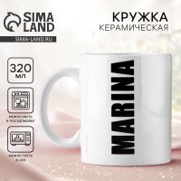 Набор|Нет;Цвет|Белый;Объём, мл|320;Тематика|Надписи, цифры, буквы;Рисунок|Да;Тематика праздника|Универсальная тематика;Материал|Керамика;Выбор имени|Марина;Дополнительный аксессуар|Без аксессуаров;Индивидуальная упаковка|Нет;Можно мыть в посудомоечной машине|Да;Можно использовать в СВЧ-печи|Да;Текстура|Гладкая;Особенности|Сублимация;Матовая поверхность|Нет;