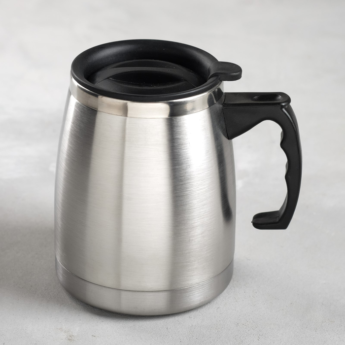 – Корпус выполнен из высококачественной нержавеющей стали. Она устойчива к повреждениям, а так же не изменяет вкус напитка. Ручка и крышка кружки выполнены из безопасного пластика.