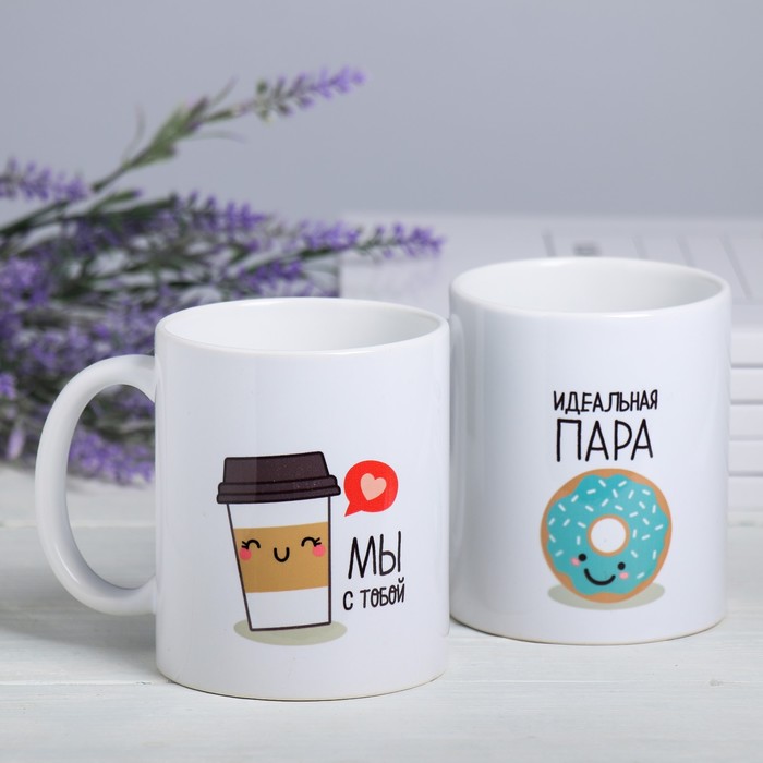 Кружки керамические парные «Мы созданы друг для друга», 300 мл, 2 шт.