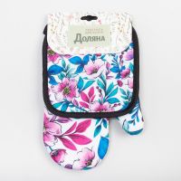Кухонный набор 2 прихватки Доляна «Нежность» , прихватка 17х17 см, варежка 24х18 см, 100% п/э