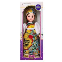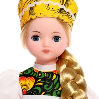 Кукла «Василина» в русском платье, украшенном эффектными узорами в стиле хохломской росписи, очарует любую девочку. Погрузитесь в удивительный мир народной культуры России с помощью этой куклы!