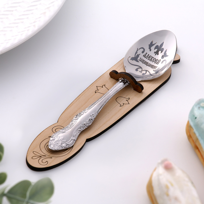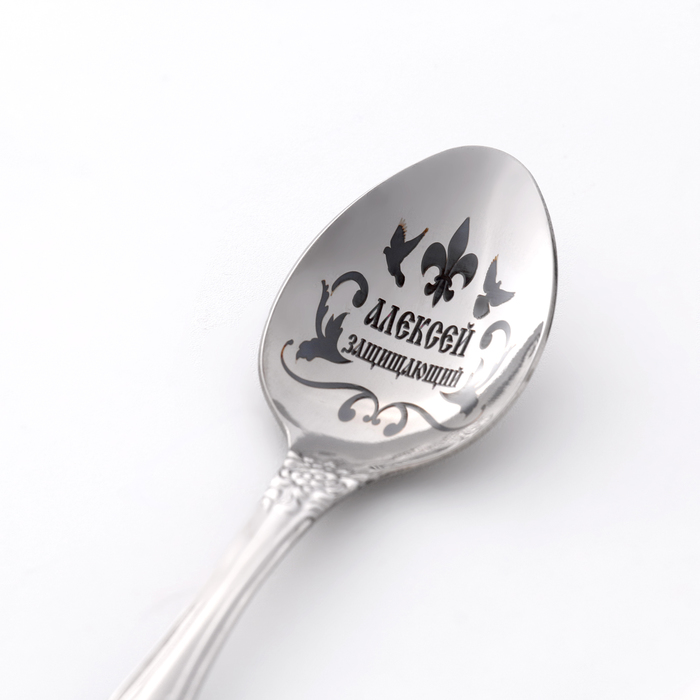 Набор|Нет;Цвет|Серебристый;Объём, мл|5;Материал ручки|Нержавеющая сталь;Рисунок|Да;Материал|Нержавеющая сталь;Выбор имени|Алексей/Лёша;Назначение|Чайные;Назначение|Сувенирные;Можно мыть в посудомоечной машине|Да;Цвет ручки|Серебристый;Особенности|Гравировка;Матовая поверхность|Нет;Внешний вид|Именные;