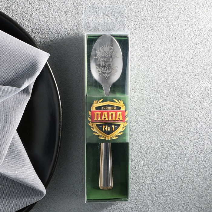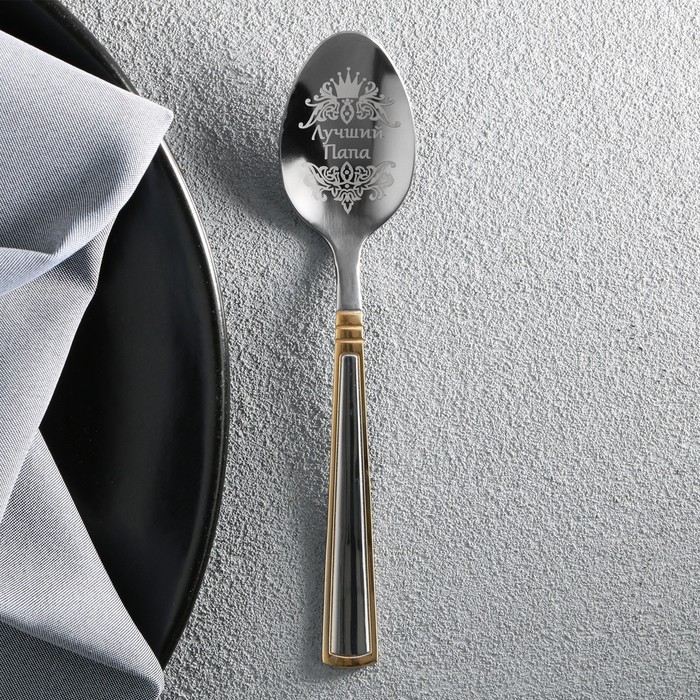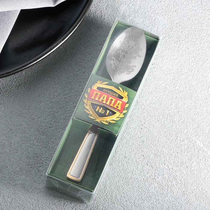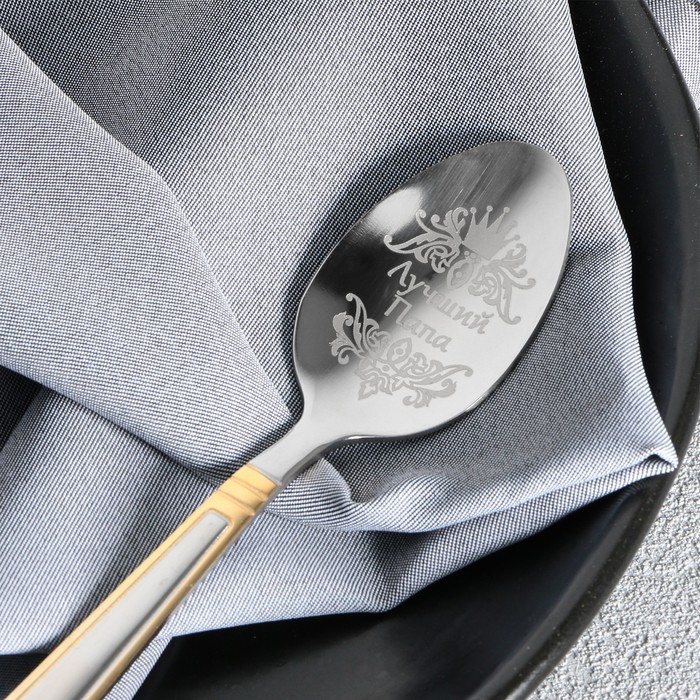 Ложка чайная с гравировкой «Лучший папа», в подарочной коробке, 3?14 см