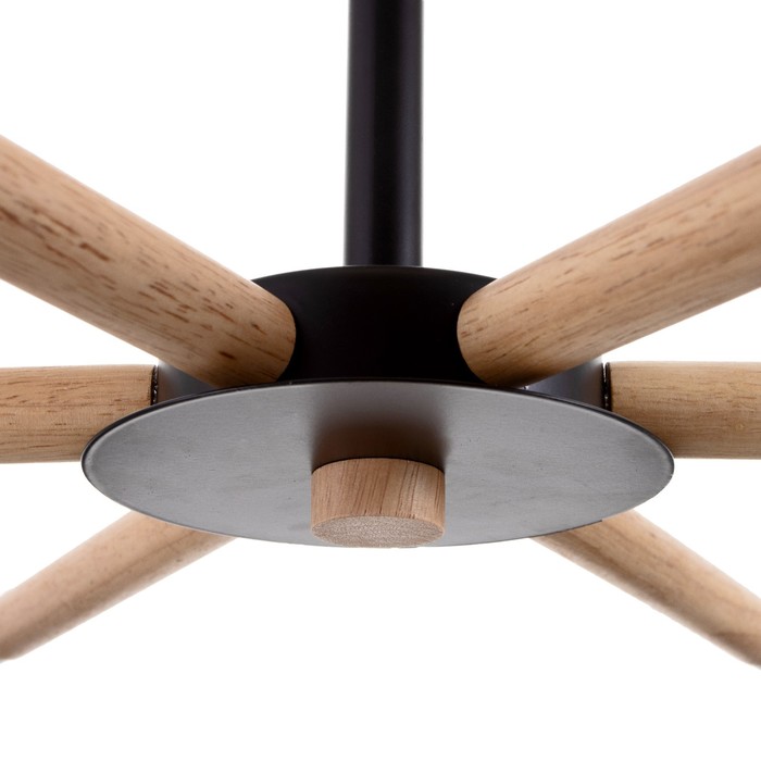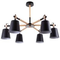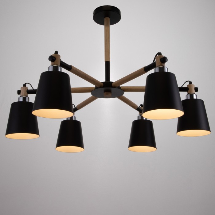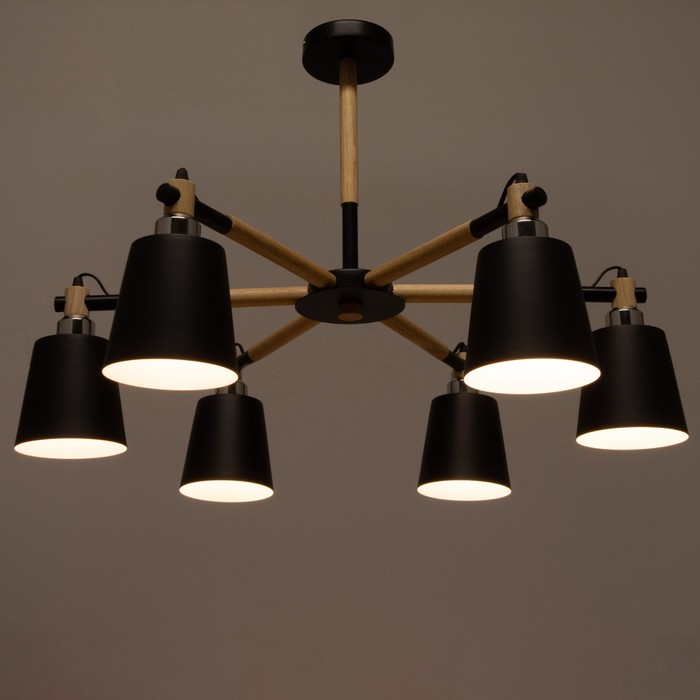 Свет, как элемент характера. Подвесной светильник с шестью чёрными конусами, чёрная штанга с деревянными вставками, E27 — масштабное решение для гостиной, кухни или спальни до 15 м?. Это не просто источник света, а архитектурная деталь в стиле скандинавского модерна и кантри, где важны контраст, функциональность и натуральные текстуры.