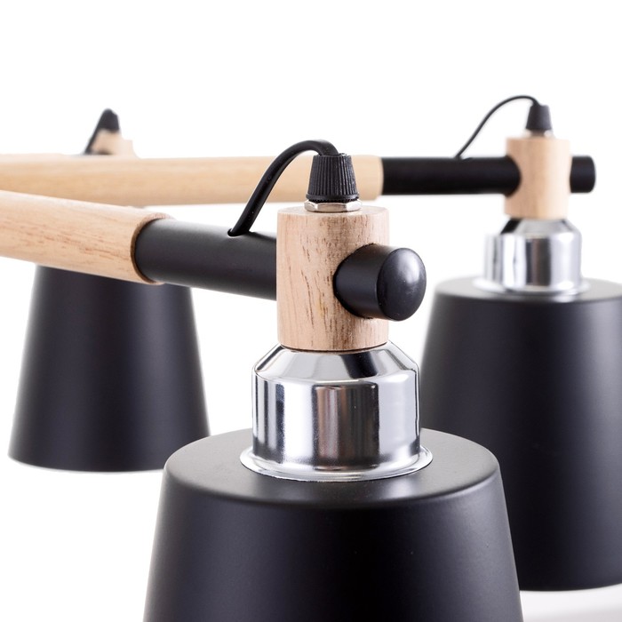 Где смотрится наиболее выигрышно: На кухне-студии с бетонными стенами, в гостиной с деревянным полом или в интерьере кафе в стиле лофт. Чёрные плафоны и деревянные элементы создают ощущение основательности и порядка, не перегружая пространство. Управление — через настенный выключатель, без пульта. Лампы приобретаются отдельно — это возможность подобрать светодиодные источники с нужной цветовой температурой и снизить энергопотребление. Такой светильник не требует идеального ремонта — он работает в реальной квартире, где важны и стиль, и повседневный комфорт.
