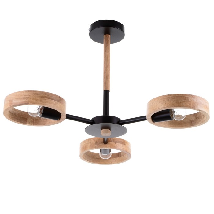 - Три плафона из дерева: Круглые абажуры направляют свет в стороны, обеспечивая равномерное освещение площади до 9 м?. Подходят для ламп накаливания или светодиодных ламп с цоколем Е27.