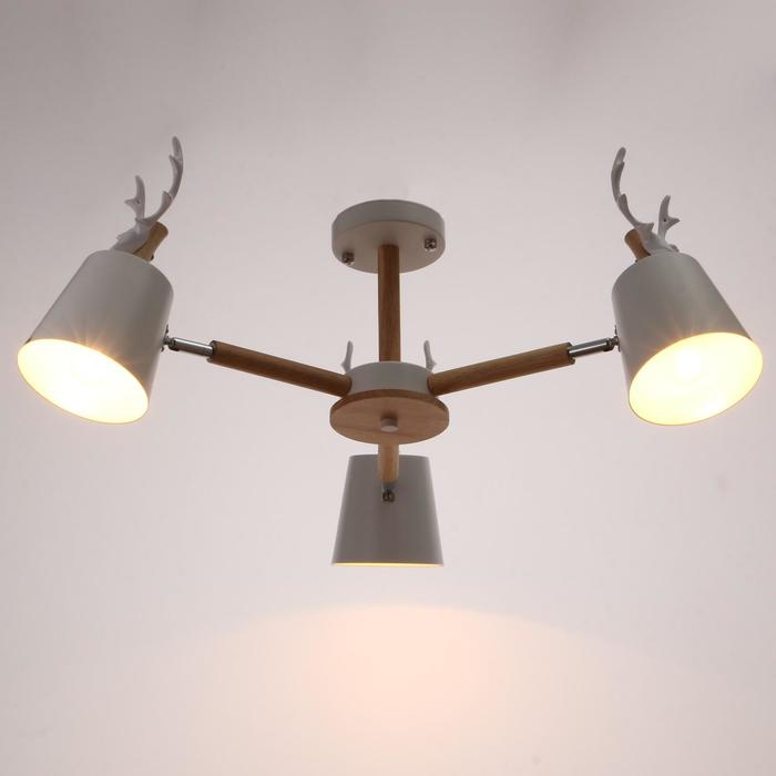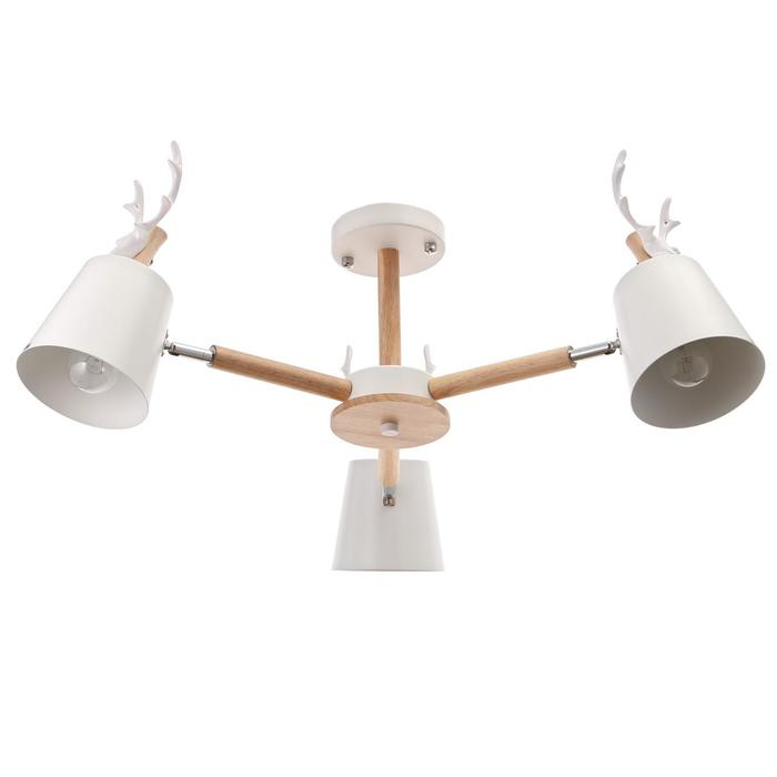 Вид лампы|Накаливания;Количество ламп|3;Стиль|Лофт;Цоколь|E27;Длина, см|72;Ширина, см|72;Высота, см|50;Площадь освещения, м²|6;Минимальная высота от потолка, см|50;Максимальная высота от потолка, см|50;Мощность на цоколь, Вт|60;Степень защиты|IP20;Назначение по помещениям|Гостиная;Назначение по помещениям|Спальня;Материал основания|Дерево;Материал основания|Металл;Цвет основания|Белый;Тип рассеивателя|Плафон;Тип подвеса|Штанга;Оттенок рассеивателя|Светлые тона;Материал рассеивателя|Металл;Управление светильником|Без пульта;Подходит для натяжных потолков|Да (при использования светодиодных ламп);Тип крепления|На планку;Форма рассеивателя|Конусный;Цвет рассеивателя|Белый;Стиль|Американский;Стиль|Дизайнерский;Тип источника освещения|Лампа не в комплекте;