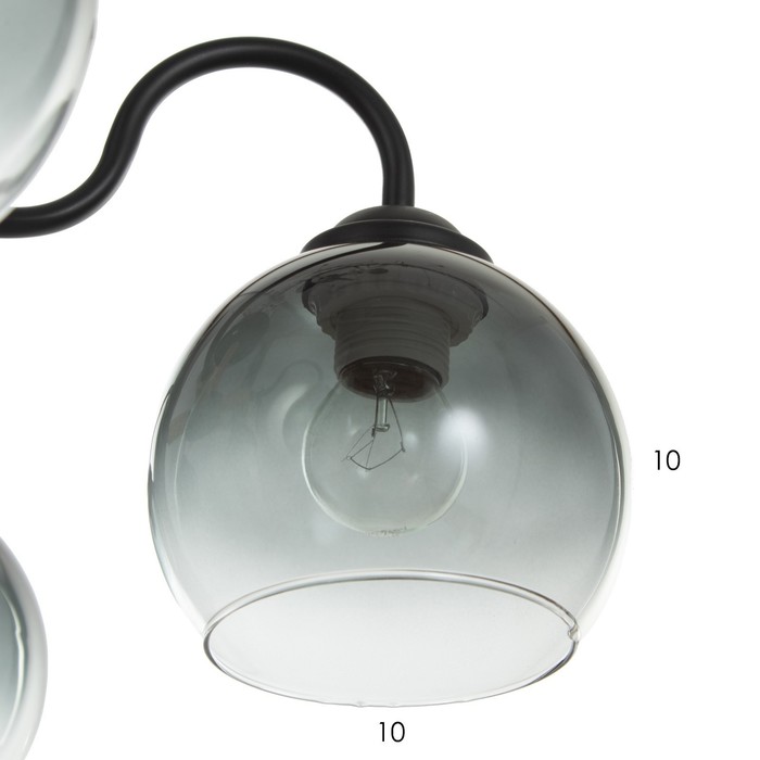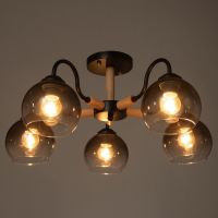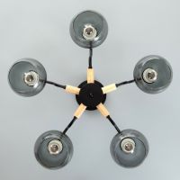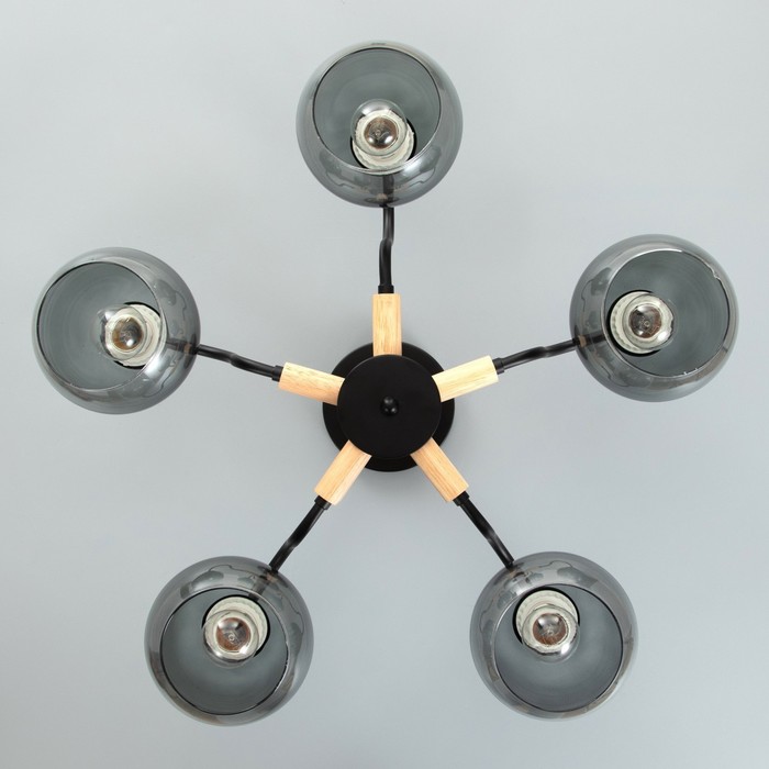 - Пять стеклянных плафонов: Полусферические абажуры из тонированного стекла направляют свет вниз, создавая комфортное освещение площади до 10 м?. Конструкция рассчитана на лампы с цоколем Е27 мощностью до 40 Вт.