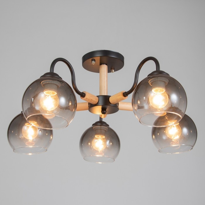 Люстра 1088/5BK 40Вт Е27 черный-светлое дерево 56х56х28 см BayerLux