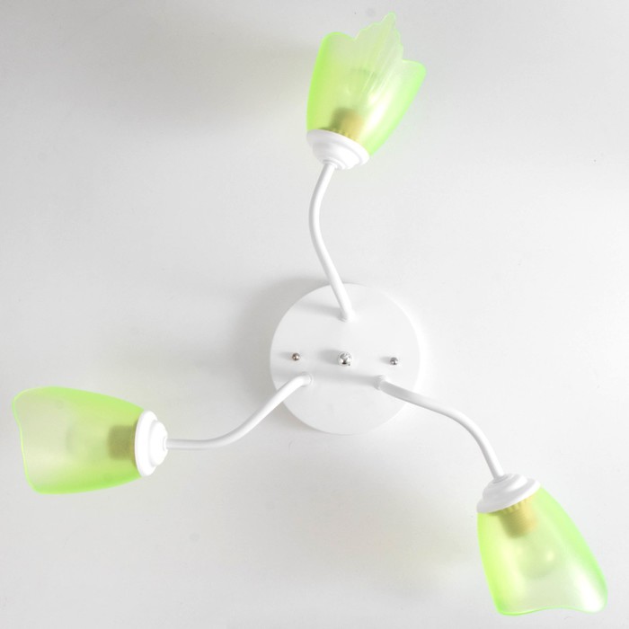 Вид лампы|Энергосберегающая;Количество ламп|3;Стиль|Эконом;Цоколь|E27;Длина, см|27;Ширина, см|19;Высота, см|13;Площадь освещения, м²|10;Минимальная высота от потолка, см|13;Максимальная высота от потолка, см|13;Мощность на цоколь, Вт|15;Степень защиты|IP20;Назначение по помещениям|Прихожая;Назначение по помещениям|Кухня;Назначение по помещениям|Детская;Назначение по помещениям|Кафе, рестораны;Назначение по помещениям|Спальня;Назначение по помещениям|Гостиная;Материал основания|Металл;Цвет основания|Белый;Тип рассеивателя|Плафон;Тип подвеса|Без подвеса (потолочный);Оттенок рассеивателя|Цветные;Материал рассеивателя|Пластик;Управление светильником|Без пульта;Подходит для натяжных потолков|Да (при использования светодиодных ламп);Плоская|Нет;Тип крепления|На планку;Форма рассеивателя|Конусный;Направление рассеивателя|В стороны;Цвет рассеивателя|Зелёный;Стиль|Минимализм;Стиль|Детский;Тип источника освещения|Лампа не в комплекте;