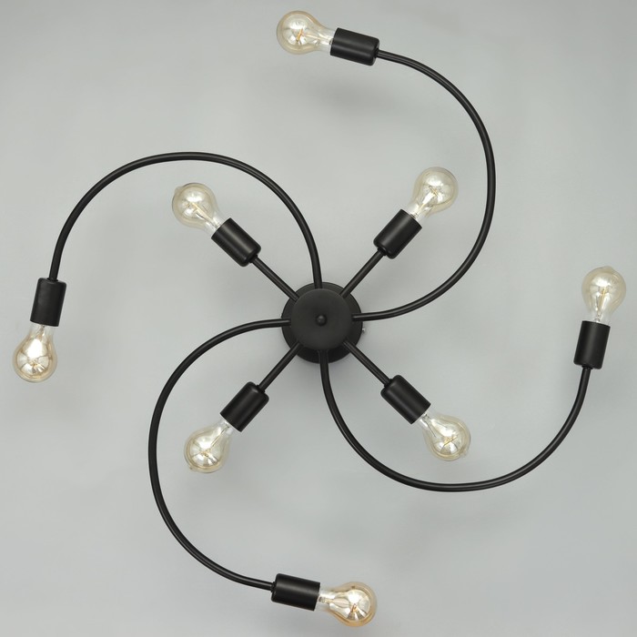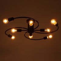 - Восемь патронов E27, до 40 Вт каждая: Поддерживает лампы накаливания, но рекомендуется использовать светодиодные — они безопасны для натяжных потолков, потребляют меньше энергии и служат дольше. Возможность выбрать лампы с эффектом «голый нить» или матовые — для тёплого или нейтрального света.