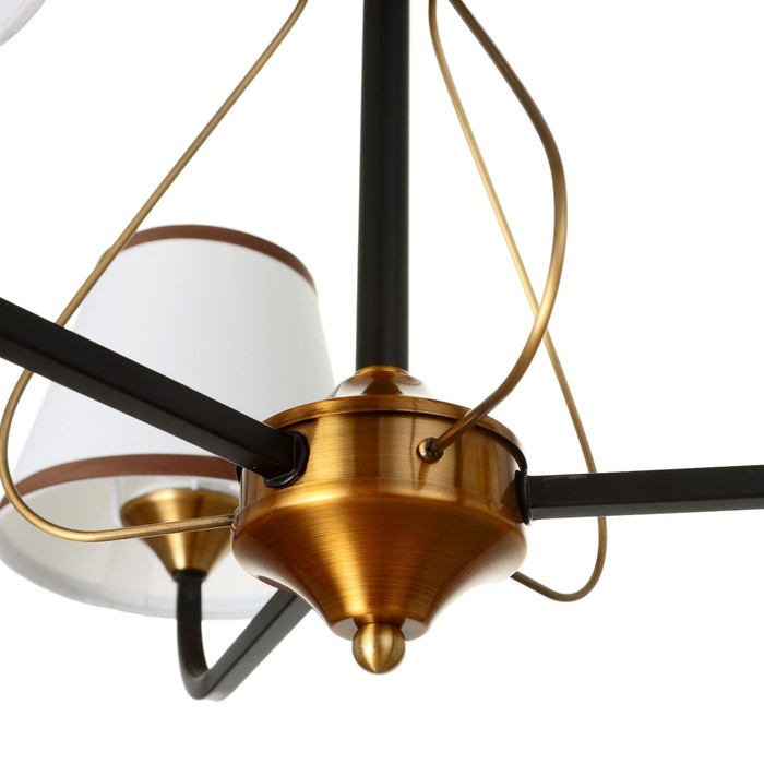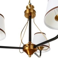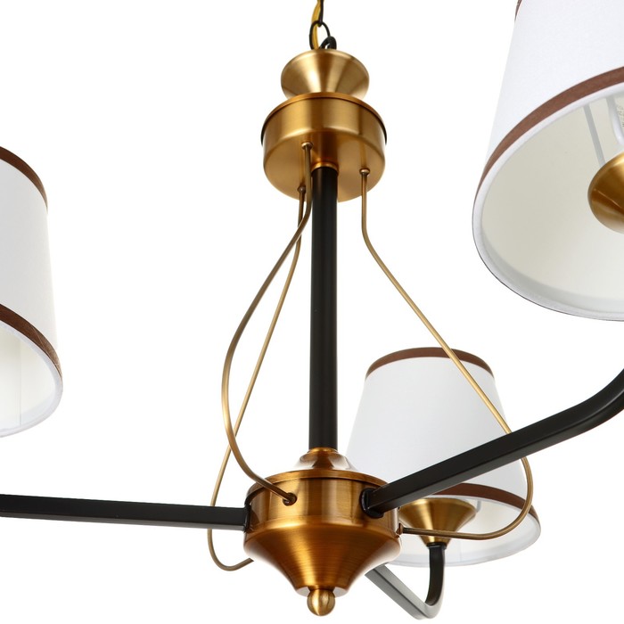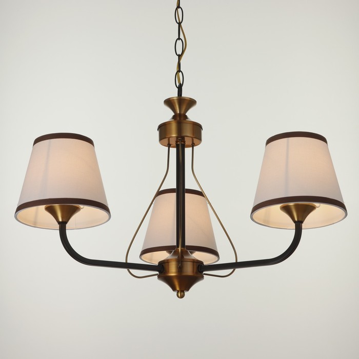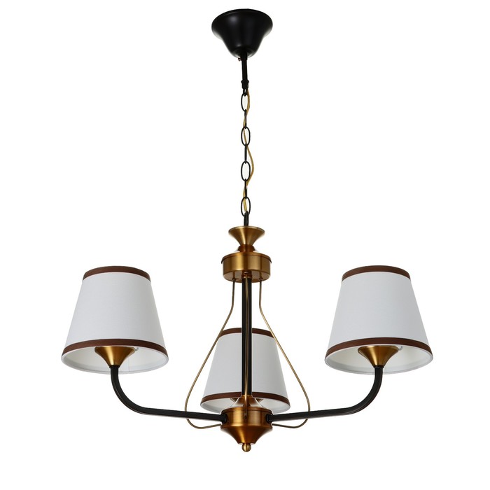 Свет, оправленный в бронзу и тень. Подвесная люстра с тремя белыми текстильными абажурами и черно-бронзовым каркасом — выразительное решение для гостиной, спальни, кухни или прихожей до 6 м?. Её классический силуэт, цепной подвес и контраст цветов создают атмосферу благородной классики с оттенком индустриальной строгости.