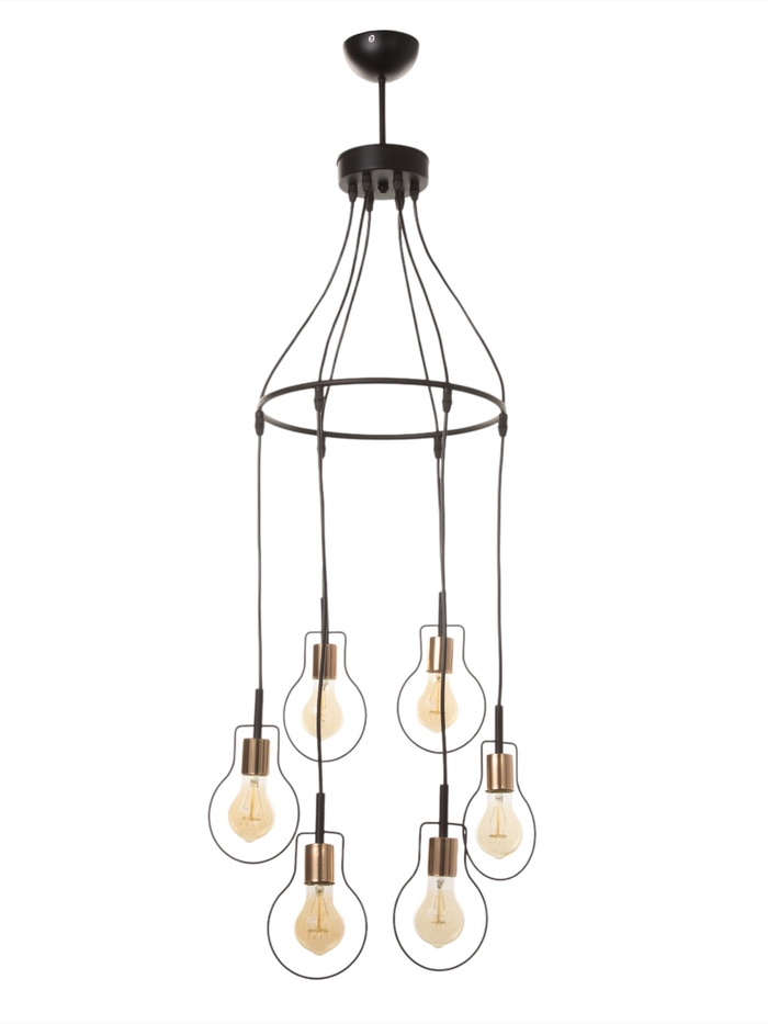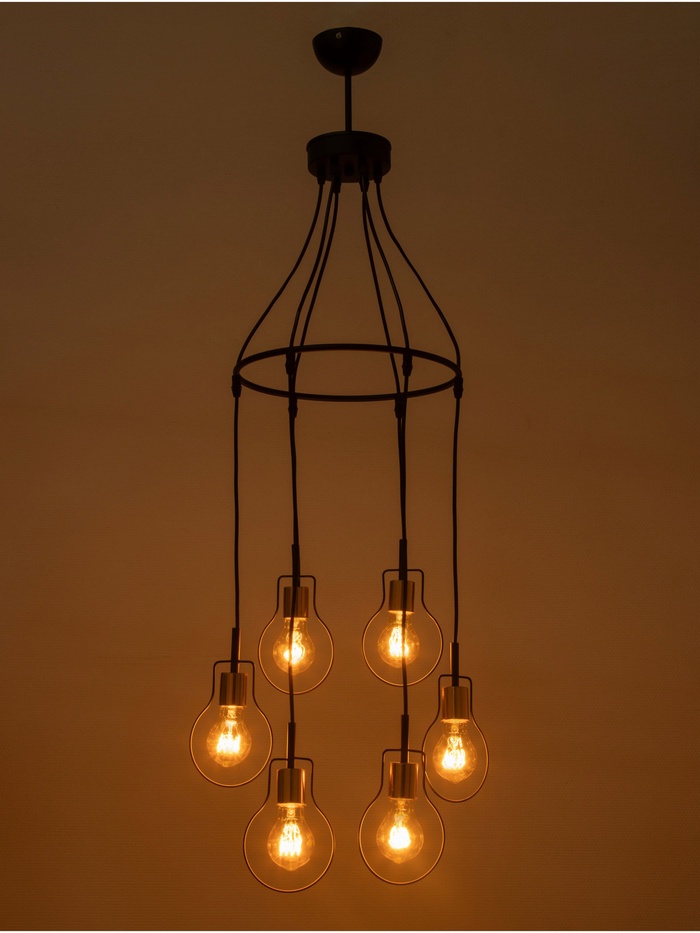 • Шесть патронов E27, до 40 Вт каждая: Совместимы с лампами накаливания, но рекомендуется использовать светодиодные — они не перегреваются, безопасны для натяжных потолков и служат дольше. Лампы с эффектом «голый нить» усиливают визуальную глубину и добавляют характера композиции.
