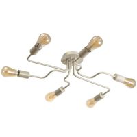Современное решение для просторных помещений! Потолочная люстра на шесть ламп — это лаконичный светильник в стиле лофт. Белый металлический каркас и открытые плафоны создают равномерное освещение во всех направлениях.