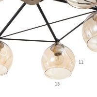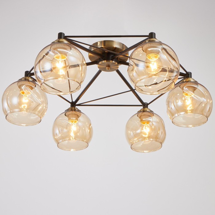 Свет с тёплым оттенком атмосферы. Потолочная люстра 6 плафонов, черно-бронзовый каркас, янтарное стекло — решение для тех, кто ищет не просто источник света, а элемент, который задаёт настроение. Её выбирают для гостиной, прихожей или кухни, где важны уют, глубина цвета и сдержанная выразительность.