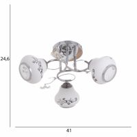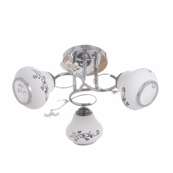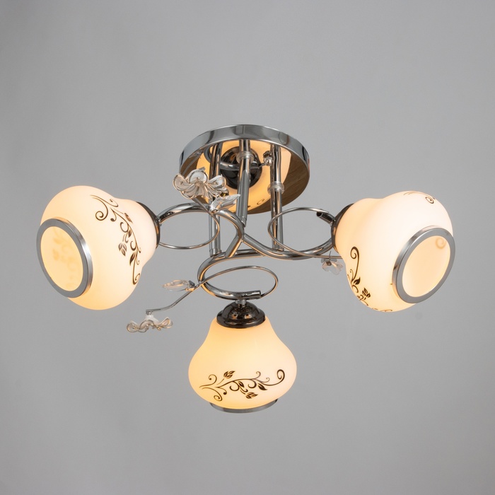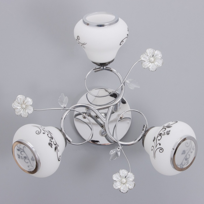Вид лампы|Накаливания;Количество ламп|3;Стиль|Эконом;Цоколь|E27;Длина, см|41;Ширина, см|41;Высота, см|24.6;Минимальная высота от потолка, см|24.6;Максимальная высота от потолка, см|24.6;Мощность на цоколь, Вт|40;Степень защиты|IP20;Назначение по помещениям|Гостиная;Назначение по помещениям|Кухня;Назначение по помещениям|Спальня;Материал основания|Металл;Цвет основания|Хром;Тип рассеивателя|Плафон;Особенности светильника|Листья;Тип подвеса|Без подвеса (потолочный);Оттенок рассеивателя|Светлые тона;Материал рассеивателя|Стекло;Управление светильником|Без выключателя;Подходит для натяжных потолков|Да (при использования светодиодных ламп);Плоская|Нет;Тип крепления|На планку;Форма рассеивателя|Декоративный;Направление рассеивателя|Вниз;Цвет рассеивателя|Матовый белый;Стиль|Классика;Тип источника освещения|Лампа не в комплекте;