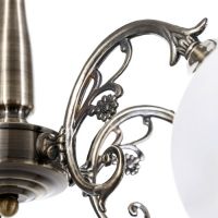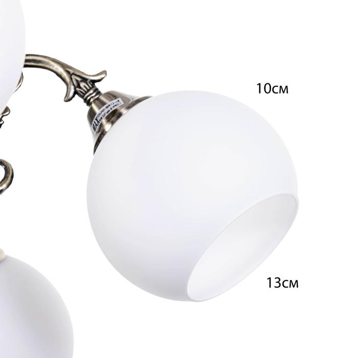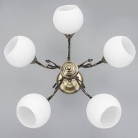 - Бронзовое металлическое основание: Цвет античной бронзы добавляет интерьеру благородства и тепла. Прочный материал обеспечивает долгий срок службы и надёжное крепление на потолке.