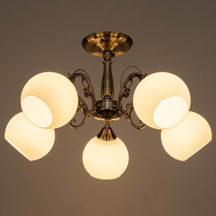Свет, который вдохновлён классикой и работает на стиль! Потолочная люстра с пятью лампами и бронзовым дизайном — это объединение строгости форм и тёплой атмосферы. Подходит для гостиной, кухни, спальни, прихожей, а также уютных кафе и ресторанов.