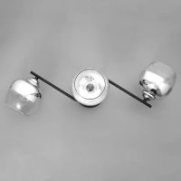 Вид лампы|Накаливания;Количество ламп|3;Стиль|Модерн и хайтек;Цоколь|E27;Длина, см|55;Ширина, см|42;Высота, см|20;Площадь освещения, м²|6;Мощность на цоколь, Вт|40;Степень защиты|IP20;Назначение по помещениям|Гостиная;Назначение по помещениям|Прихожая;Назначение по помещениям|Кухня;Материал основания|Металл;Цвет основания|Чёрный;Цвет основания|Хром;Тип рассеивателя|Плафон;Тип подвеса|Штанга;Оттенок рассеивателя|Светлые тона;Оттенок рассеивателя|Цветные;Материал рассеивателя|Стекло;Управление светильником|Без пульта;Подходит для натяжных потолков|Да (при использования светодиодных ламп);Плоская|Нет;Тип крепления|На планку;Форма рассеивателя|Полушар;Направление рассеивателя|Вниз;Цвет рассеивателя|Прозрачный;Стиль|Модерн;Стиль|Современный;Тип источника освещения|Лампа не в комплекте;
