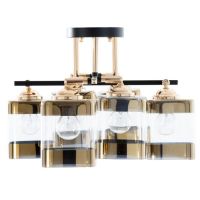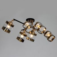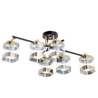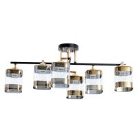 Свет, который держит линию. Потолочная люстра 6 плафонов, чёрный металл с золотыми вставками, прозрачное стекло – это современное решение для гостиной или спальни, где важны чёткая геометрия, насыщенное освещение и сдержанная выразительность.