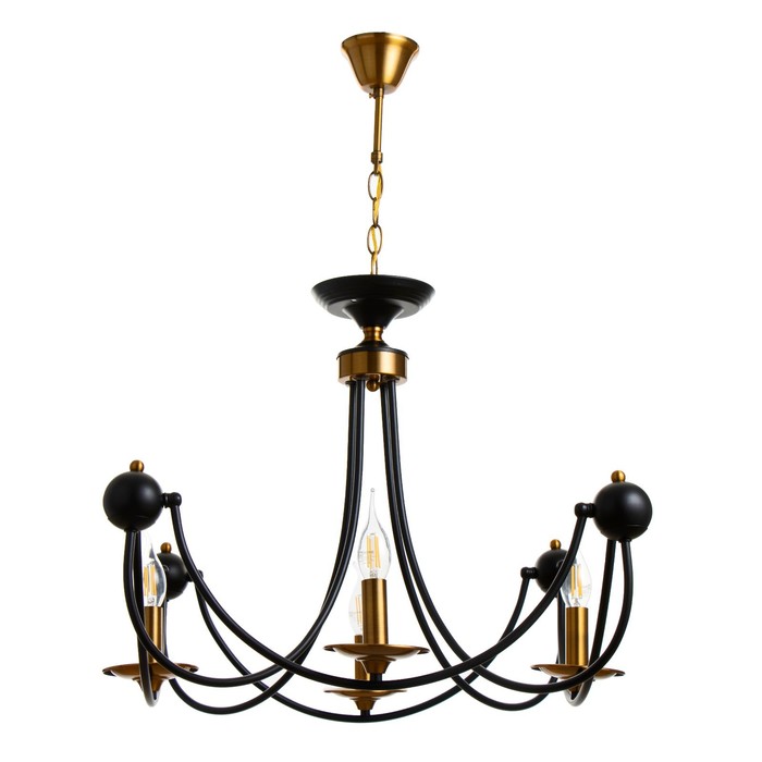 Вид лампы|Накаливания;Количество ламп|4;Стиль|Классика;Цоколь|E14;Длина, см|60;Ширина, см|60;Высота, см|73;Площадь освещения, м²|8;Мощность на цоколь, Вт|40;Минимальная высота от потолка, см|73;Максимальная высота от потолка, см|73;Степень защиты|IP20;Назначение по помещениям|Кухня;Назначение по помещениям|Прихожая;Назначение по помещениям|Гостиная;Назначение по помещениям|Спальня;Материал основания|Металл;Цвет основания|Золотой;Цвет основания|Чёрный;Тип рассеивателя|Под свечку;Тип подвеса|Цепь;Оттенок рассеивателя|Цветные;Управление светильником|Без пульта;Подходит для натяжных потолков|Да (при использования светодиодных ламп);Плоская|Нет;Тип крепления|Под крюк;Направление рассеивателя|Вверх;Стиль|Классика;Стиль|Неоклассика;Тип источника освещения|Лампа не в комплекте;
