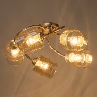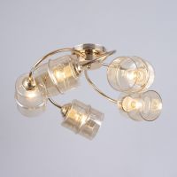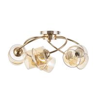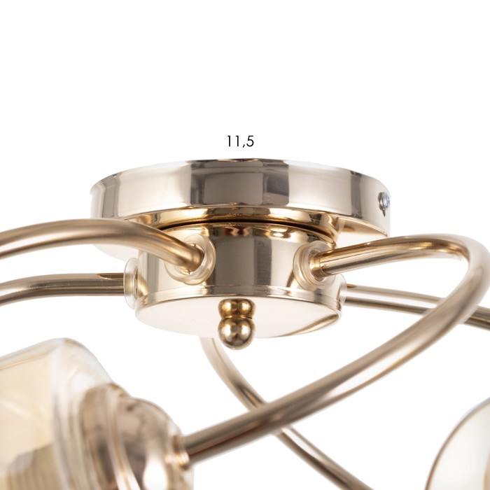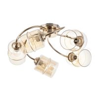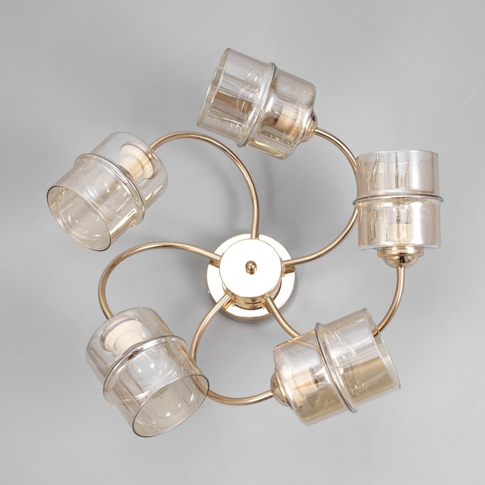 Вид лампы|Накаливания;Количество ламп|5;Стиль|Эконом;Цоколь|E27;Длина, см|58;Ширина, см|58;Высота, см|27;Площадь освещения, м²|10;Минимальная высота от потолка, см|27;Максимальная высота от потолка, см|27;Мощность на цоколь, Вт|40;Степень защиты|IP20;Назначение по помещениям|Кухня;Назначение по помещениям|Гостиная;Назначение по помещениям|Спальня;Назначение по помещениям|Коридор;Материал основания|Металл;Цвет основания|Золотой;Тип рассеивателя|Плафон;Тип подвеса|Без подвеса (потолочный);Материал рассеивателя|Стекло;Управление светильником|Без пульта;Подходит для натяжных потолков|Да (при использования светодиодных ламп);Тип крепления|На планку;Форма рассеивателя|Цилиндр;Цвет рассеивателя|Медовый;Стиль|Современный;Тип источника освещения|Лампа не в комплекте;