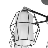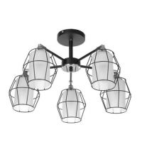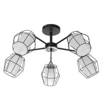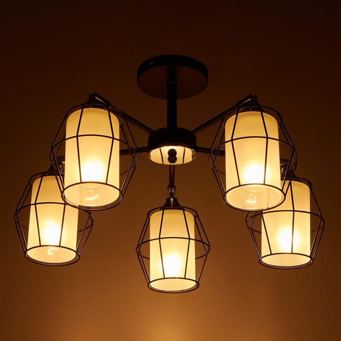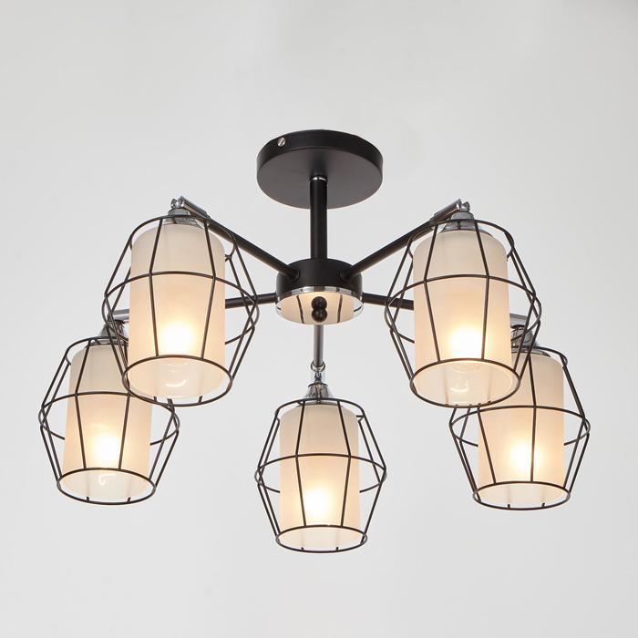 Вид лампы|Накаливания;Количество ламп|5;Стиль|Лофт;Цоколь|E27;Длина, см|43;Ширина, см|43;Высота, см|15;Площадь освещения, м²|15;Минимальная высота от потолка, см|15;Максимальная высота от потолка, см|15;Мощность на цоколь, Вт|60;Степень защиты|IP20;Назначение по помещениям|Прихожая;Назначение по помещениям|Кухня;Назначение по помещениям|Гостиная;Назначение по помещениям|Спальня;Назначение по помещениям|Кафе, рестораны;Материал основания|Металл;Цвет основания|Чёрный;Тип рассеивателя|Плафон;Тип подвеса|Штанга;Оттенок рассеивателя|Светлые тона;Материал рассеивателя|Стекло;Управление светильником|Без пульта;Подходит для натяжных потолков|Да (при использования светодиодных ламп);Плоская|Нет;Тип крепления|На планку;Форма рассеивателя|Ромб;Форма рассеивателя|Цилиндр;Направление рассеивателя|Поворотное;Цвет рассеивателя|Чёрный;Цвет рассеивателя|Матовый белый;Стиль|Лофт;Стиль|Современный;Стиль|Модерн;Тип источника освещения|Лампа не в комплекте;