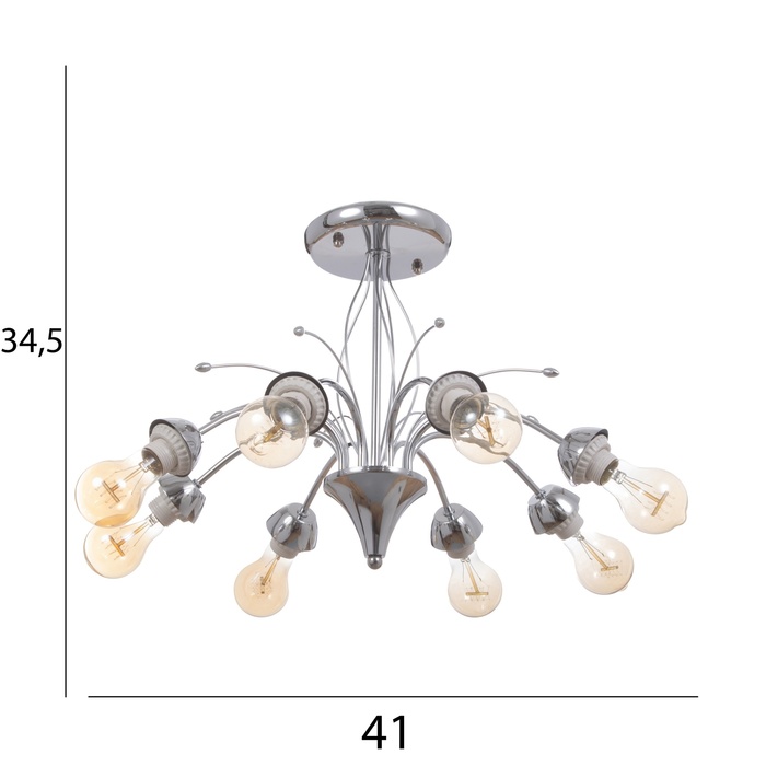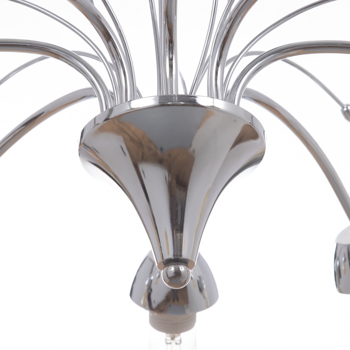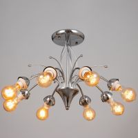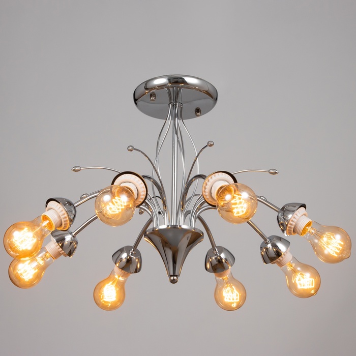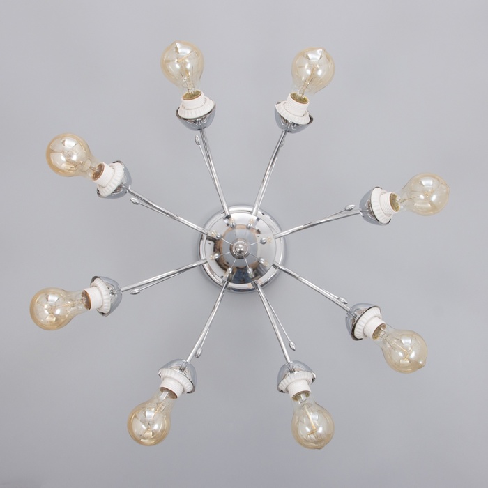 Вид лампы|Накаливания;Количество ламп|8;Цоколь|E27;Длина, см|41;Ширина, см|41;Высота, см|34.5;Площадь освещения, м²|16;Минимальная высота от потолка, см|34.5;Максимальная высота от потолка, см|34.5;Мощность на цоколь, Вт|40;Степень защиты|IP20;Назначение по помещениям|Коридор;Назначение по помещениям|Детская;Назначение по помещениям|Прихожая;Назначение по помещениям|Для сухих помещений;Назначение по помещениям|Спальня;Материал основания|Металл;Цвет основания|Хром;Тип рассеивателя|Без плафонов;Тип подвеса|Штанга;Управление светильником|Без пульта;Подходит для натяжных потолков|Да (при использования светодиодных ламп);Плоская|Нет;Тип крепления|На планку;Направление рассеивателя|Вниз;Стиль|Классика;Тип источника освещения|Лампа не в комплекте;